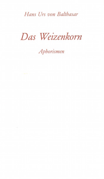 Hans Urs von Balthasar Das Weizenkorn Aphorismen 41989, 111 Seiten, kartoniert € 6.- / CHF 12.- ISBN 978 3 89411 024 6 |
