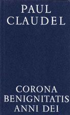 Mit «Corona» (1915) verlagert Claudel sein lyrisches Schaffen vom Kosmischen (der «Fünf Großen Oden» (1910) und des «Singspiels» (1913)) ganz auf das Kirchliche hinüber, die «Ode» wird zum «Hymnus» der christlichen Mysterien: der Feste des Kirchenjahres, einzelner Heilsmysterien, der zwölf Apostel, gewisser Heiligen, die dem Dichter von jeher nahestanden oder durch bestimmte Lebensumstände plötzlich naherückten, schließlich seiner eigenen christlichen Existenz. Eingestreut sind kleine «Bilder und Buchzeichen», die zum Teil aus viel früheren Jahren der Schwermut, des l’Art pour l’Art stammen. So schwebt die Form bewußt zwischen dem Liturgischen und dem Persönlichen, in einer für Frankreich seltsamen Interferenz, die wir im Deutschen eher (von Luther, Gerhard, Spee, Brentano und dem Geistlichen Jahre der Droste her) gewohnt sind. So von einer Idee zusammengehalten, wechseln im Innern des Kreises die Form und der Inhalt aufs freieste: fast überdimensionierte Hymnen, prallgestopft mit biblischen Reminiszenzen (Pfingst- und Sakramentshymnus, Allerseelengedicht und Weihnachtsmarschlied) stehen neben wundervollen Miniaturbildern (wie der «Nepomuk» und «Das Prager Jesuskind»), Düsteres (wie «Finsternis» und «Ballade») wechselt mit Kindlich-Heiterem («Sankt Nikolaus»), einsam, turmartig überragt alles das Gedicht auf das Straßburger «Münster». Klassische knappe Form («Benedikt», «Verklärung») wechselt mit holzschnittartigen Bildern (die Apostelgruppe, aus denen «Petrus», «Thaddäus», «Andreas» neben andern gelungenen herausragen). Der absichtlich überfrachtete Titel entspricht Psalm 64,12.